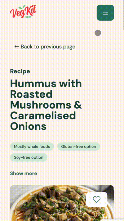 I worked with VegKit to rebuild their online recipe platform with the goal of creating a more streamlined experience for people browsing for plant based goodness online.